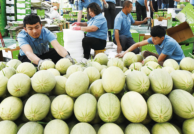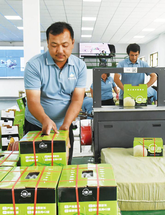 图为工人在打包哈密瓜,准备发货。吐鲁番市融媒体中心记者刘健摄