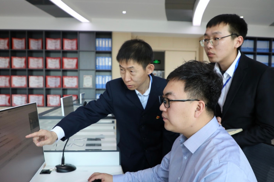 重庆市渝中区纪检监察干部借助数据分析系统筛查问题线索、分析异常数据。(受访者供图)