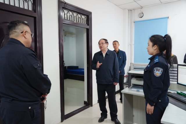 图为文天平在高昌区亚尔镇恰章村便民警务室了解基层治理、维护稳定、服务群众等工作情况。吐鲁番市融媒体中心记者彭丹妮摄