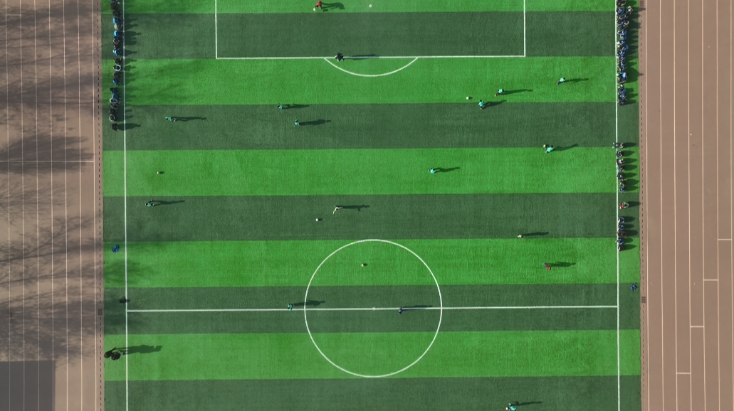 学生们在新建的足球场上训练。
