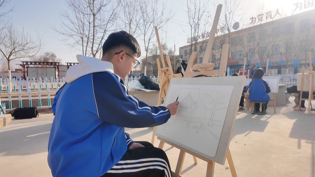 美术社的学生在写生。