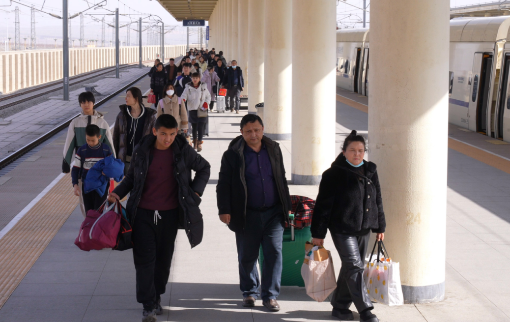 当天14时,记者在吐鲁番北站候车大厅看到,旅客们拖着行李箱、手提家乡特产,在工作人员引导下有序候车。进站口处,多条安检通道同时开放,旅客排队快速通过;候车室内,身着制服的工作人员穿梭人群中,为旅客指引方向、解答问询;站台上,客运员手持喇叭反复提醒注意安全、有序乘车。