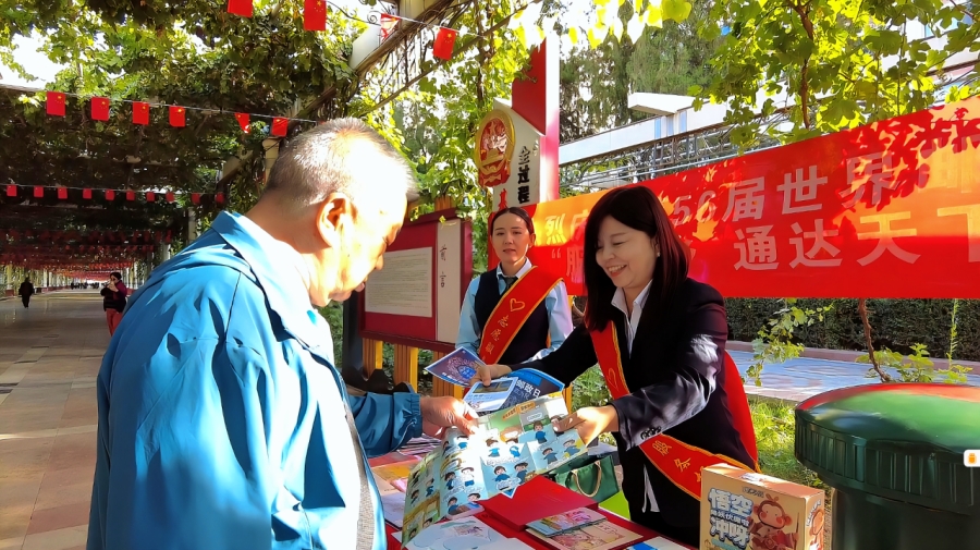 吐鲁番市融媒体中心讯(文/图实习记者余宗璞)10月9日是第56个世界邮政日,中国邮政集团有限公司吐鲁番市分公司(以下简称吐鲁番市邮政分公司)在高昌区青年路葡萄长廊组织开展主题宣传活动,以贴近群众的方式普及邮政知识、宣传防诈骗常识,让邮政服务更加深入人心。