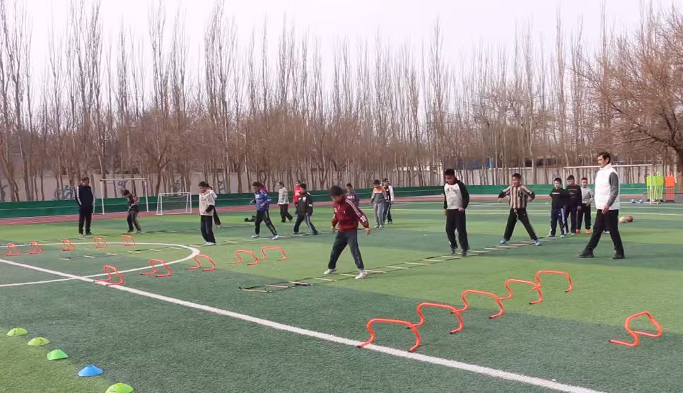 2月19日,托克逊县第二中学的绿茵场上暖意融融。体育老师正带着学生们进行跨栏跑训练,从起跑到摆臂,从跨栏到落地,每一个动作都细细打磨。旁边的飞镖投掷区,师生围坐一圈,老师耐心讲解发力技巧,孩子们听得入神、投得起劲。