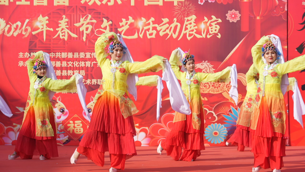 年货大集旁的舞台上,精彩的文艺展演引人注目。演员们用热情的舞姿、嘹亮的歌声、精湛的戏曲表演和富有民族风情的演绎,为现场观众带来了一场视听盛宴,传递着新春的美好祝福,凝聚起向上的精神力量。居民田桂英说:“带着孩子来赶大集、看演出,他们特别开心。”