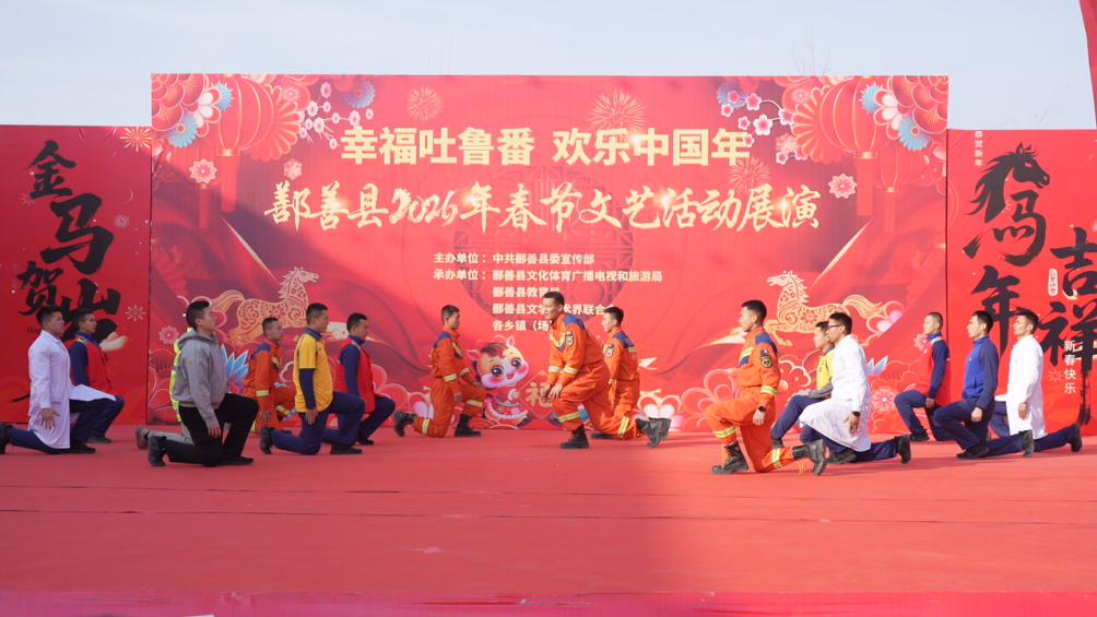 春节临近,年味正浓。连日来,鄯善县举办以“幸福吐鲁番欢乐中国年”为主题的年货大集与2026年春节文艺展演活动,各族群众逛集市、办年货、赏节目,沉浸在热闹喜庆的迎春氛围中。