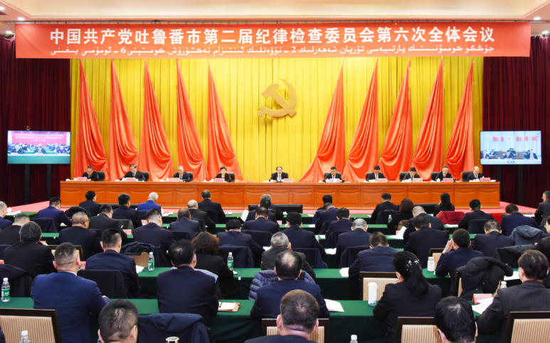 文天平强调,2025年,在以习近平同志为核心的党中央坚强领导下,在自治区党委正确领导和自治区纪委监委指导支持下,全市各级党组织和纪检监察机关深入贯彻全面从严治党战略方针,推动党风廉政建设和反腐败斗争取得明显成效,保障吐鲁番现代化建设迈出坚实步伐。2026年是“十五五”开局之年,也是我们党成立105周年,做好今年工作意义重大、责任重大。全市各级党组织和广大党员干部要完整准确全面贯彻新时代党的治疆方略,牢牢扭住社会稳定和长治久安工作总目标,坚定不移把党的自我革命向纵深推进,凝心聚力谱写建设“五强两新三高双美”社会主义现代化吐鲁番新篇章。