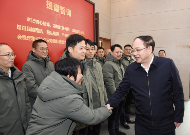 座谈会前,文天平看望慰问湖南援疆干部人才代表,勉励大家继续扎根边疆、建功立业。