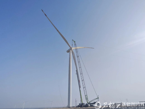 “对接成功!”对讲机里传来一阵短暂的欢呼。13时许,最后一台风机完成精准对接,至此,该项目所有风机全部吊装就位。