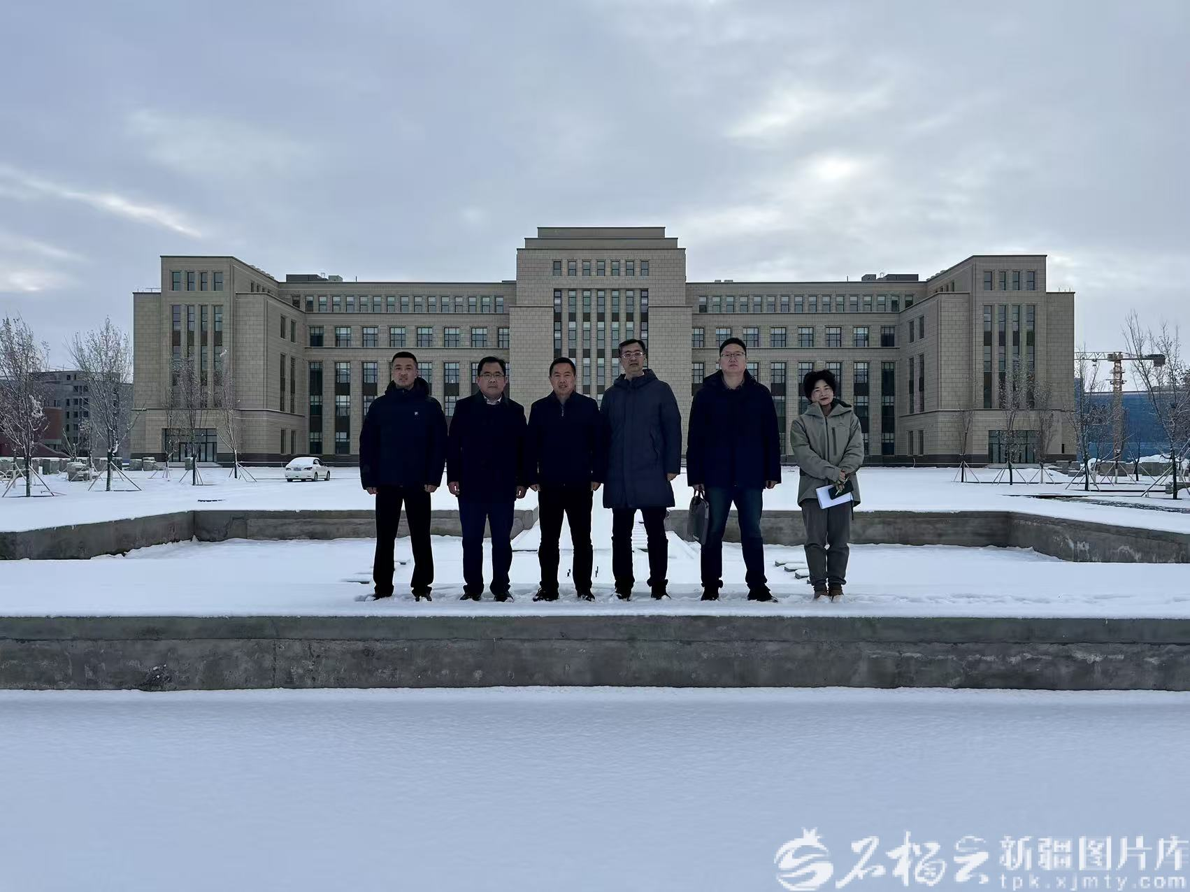 2025年12月,参与资格评审的淮安市职业教育教师骨干在胡杨河职业技术学院前合影。淮安援疆前方工作组供图