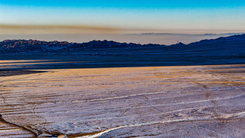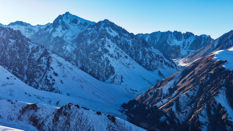 这片海拔3000多米的高山草原,距托克逊县城100多公里,冬季积雪厚度可达30厘米以上,是吐鲁番市少有的雪景胜地。傍晚时分,皑皑白雪覆盖的草原在光影交织中呈现出柔美的起伏曲线,牧道痕迹隐约可见。远方的博格达峰巍然屹立,峰顶积雪在夕阳映照下熠熠生辉,宛如披上一层金色霞光,构成了一幅动人的冬日画卷。