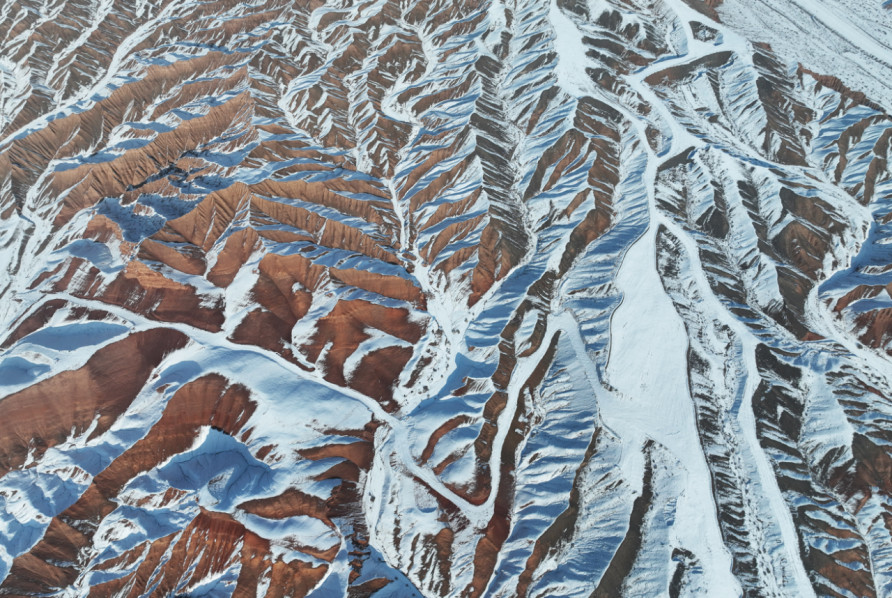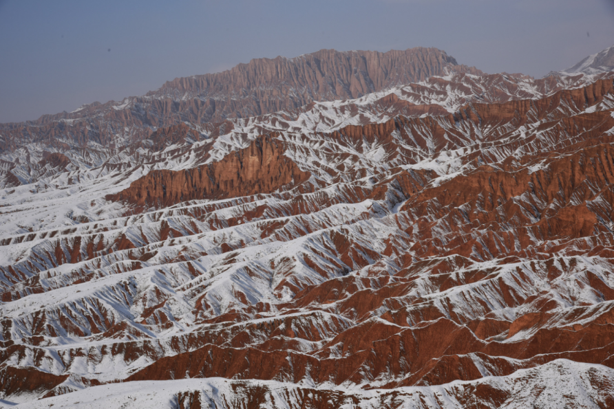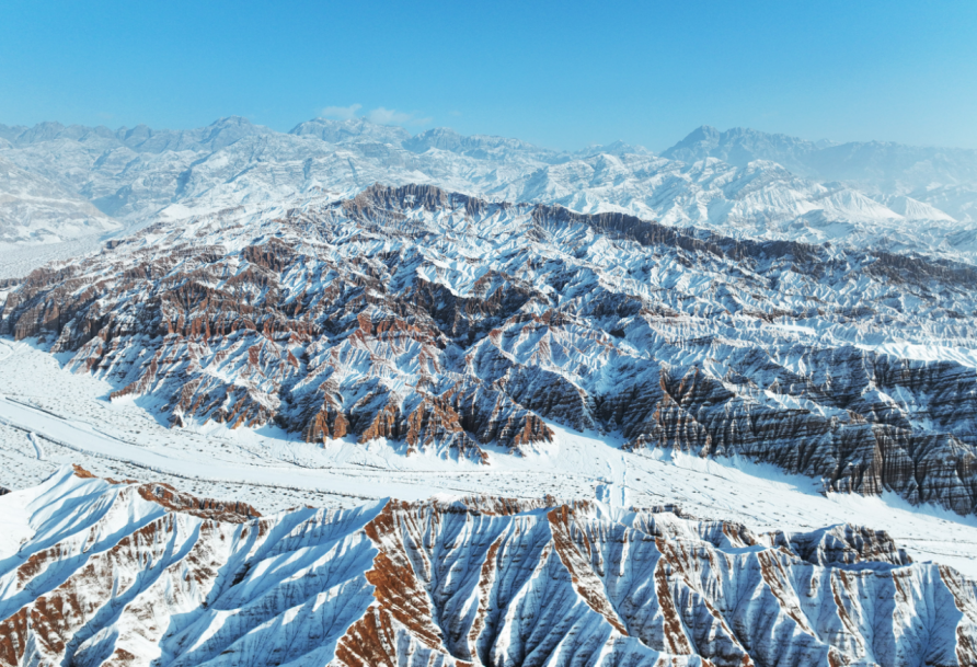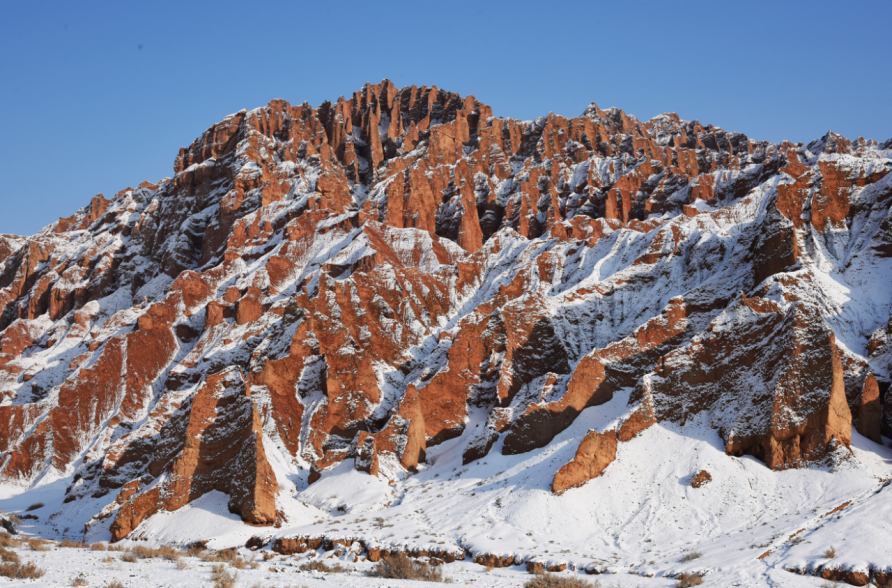 12月25日,在吐鲁番火云谷景区,雪后的火焰山银装素裹,冰与火的奇景蔚为壮观。火焰山横卧于吐鲁番盆地,盛夏酷热似火,冬季披上“银装”的火焰山分外妖娆,景色迷人。吐鲁番市融媒体中心记者刘健刘宇杰摄