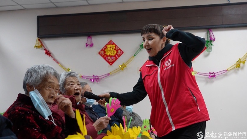2025年3月12日,热比古丽走进老年公寓慰问老人,并与老人们互动。本人供图