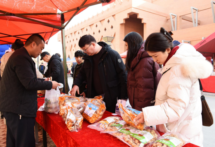 1月31日,“幸福吐鲁番欢乐中国年”2026年货大集火热开市。吐鲁番市高昌区、鄯善县、托克逊县三地联动,共绘一幅热闹欢腾的新春盛景。图为群众购置年货。吐鲁番市融媒体中心记者刘健摄