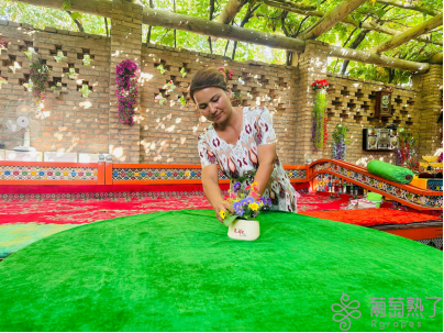 葡萄熟了/吐鲁番市融媒体中心讯(文/图记者阿地兰李卉芳)“我把庭院重新进行了分区,打造了以果园为主,小菜园、小花园为辅的‘美丽庭院’,并开办了农家乐,现在生意很不错。”8月30日,高昌区葡萄沟街道拜西买里社区居民玛依努尔·外力笑容满面地说。