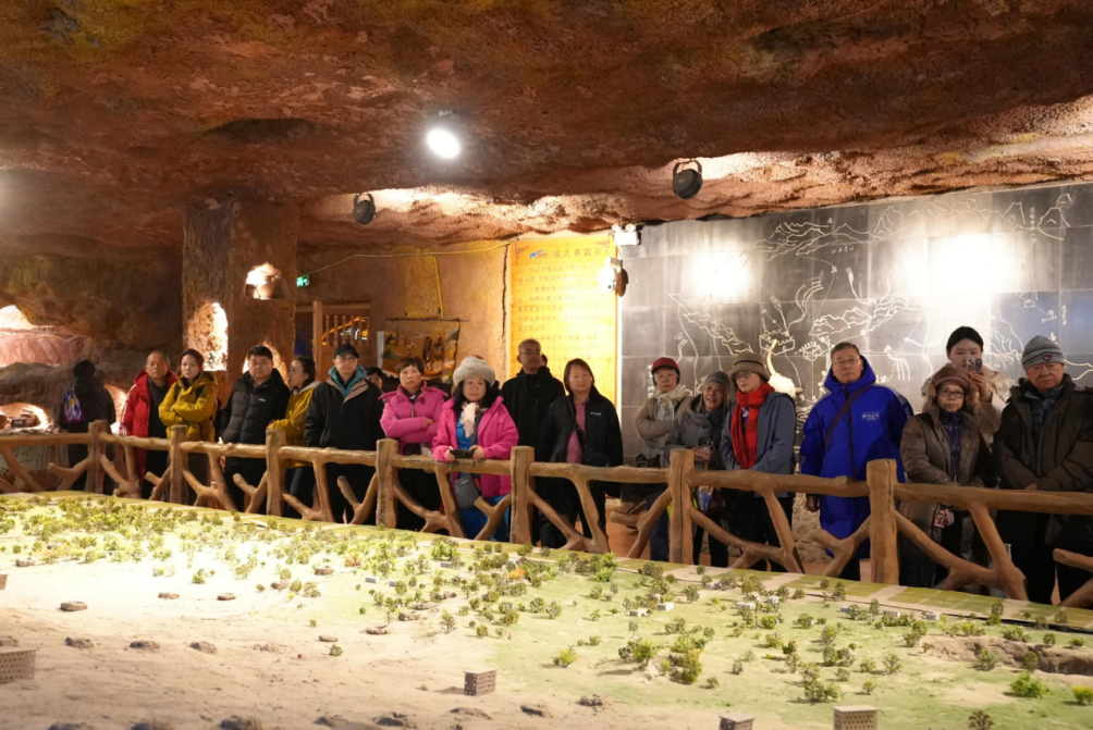作为吐鲁番首家沉浸式主题体验园区,坎儿井民俗园景区依托300米长的地下通道,打造了集演艺、餐饮、文创于一体的多元体验空间。游客们深入坎儿井地下暗渠,实地了解这一古老水利工程的智慧,纷纷用手机记录独特景观。当晚,游客们还参加了“高昌宴”主题晚宴,欣赏了吐鲁番木卡姆、纳孜库姆等歌舞表演,并参与了吐鲁番冬季旅游线路推介活动。