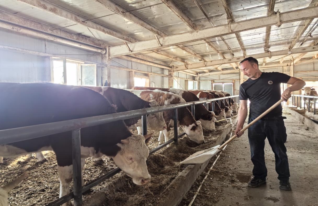 安晓军还将目光投向了村庄周边那片戈壁滩,积极争取项目资金,打造占地193亩的高标准养殖小区,成立景秀山牛羊养殖专业合作社,采取“统一饲养、统一技术服务、统一销售”模式,带动村民养殖牛1510头、羊1430只,300余名村民从中受益,有效激发了村民参与规模化养殖的积极性。